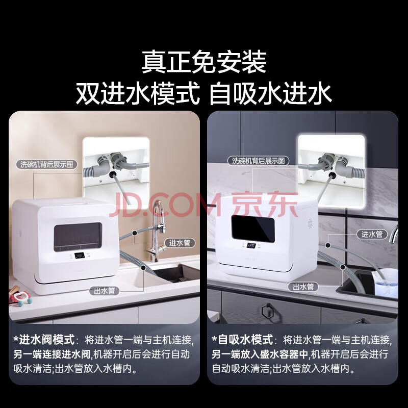 商品相册:科勒(KOHLER)台式洗碗机高压双层立体喷淋 高温除菌热风烘干洗消一体家用台面独立式免安装小型洗碗机29973T-NA第