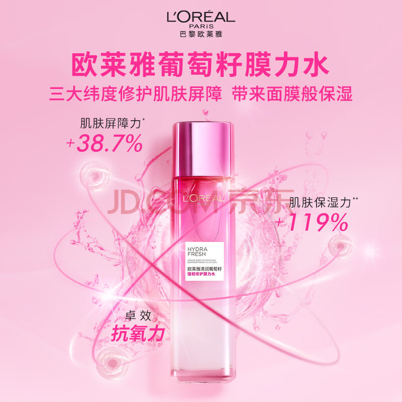 商品相册:欧莱雅葡萄籽修护膜力水130ml护肤品套装爽肤水乳补水生日礼物送女友第