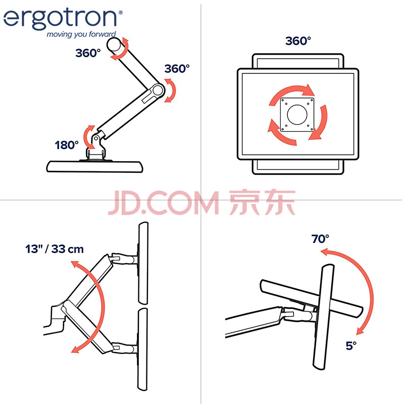 商品相册:爱格升(ERGOTRON) 40“双屏支架大屏双显示器支架臂电脑显示器显示屏支架显示器增高架电脑桌(45-509-216)白色第