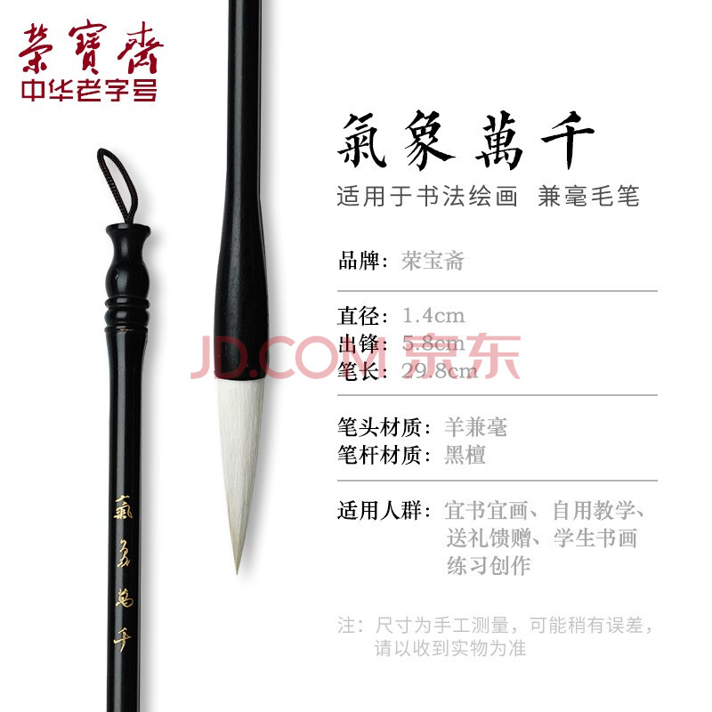 商品相册:荣宝斋 毛笔 高档精品羊兼毫 文房四宝书法国画大中小楷初学者行草楷隶篆书 张旭光-大楷第