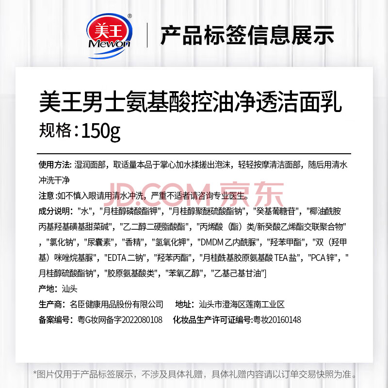 商品相册:美王男士洗面奶氨基酸洁面乳膏 高效控油去黑头护肤品深层清洁150g第