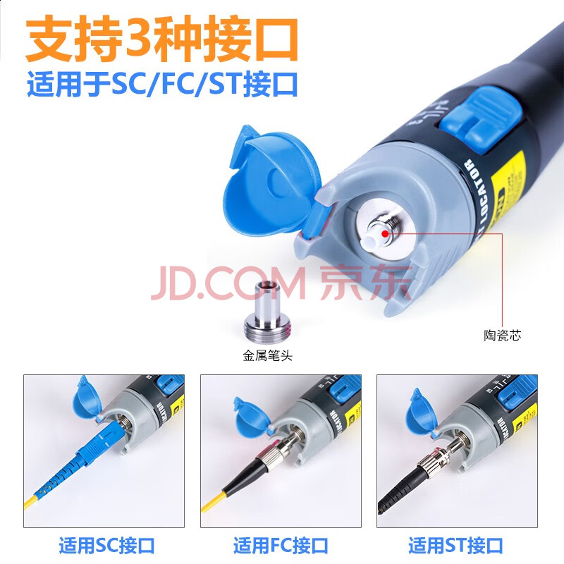商品相册:礼嘉 光纤红光笔5公里 5mW镭射光纤故障测试笔 光纤检测笔 SC/FC/ST接口冷接子通用 LJ-6805第