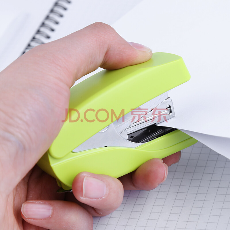 商品相册:国誉(KOKUYO)进口便携式订书机学生便携式强力平针订书机可装订32张纸 黄绿色 SL-MF55-02YG第