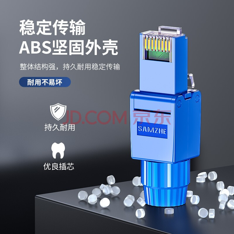 商品相册:山泽 超五类免压水晶头 工程级8P8C免打RJ45电脑网线接头 Cat5e免工具网络连接器 单个装 MDSJ51第