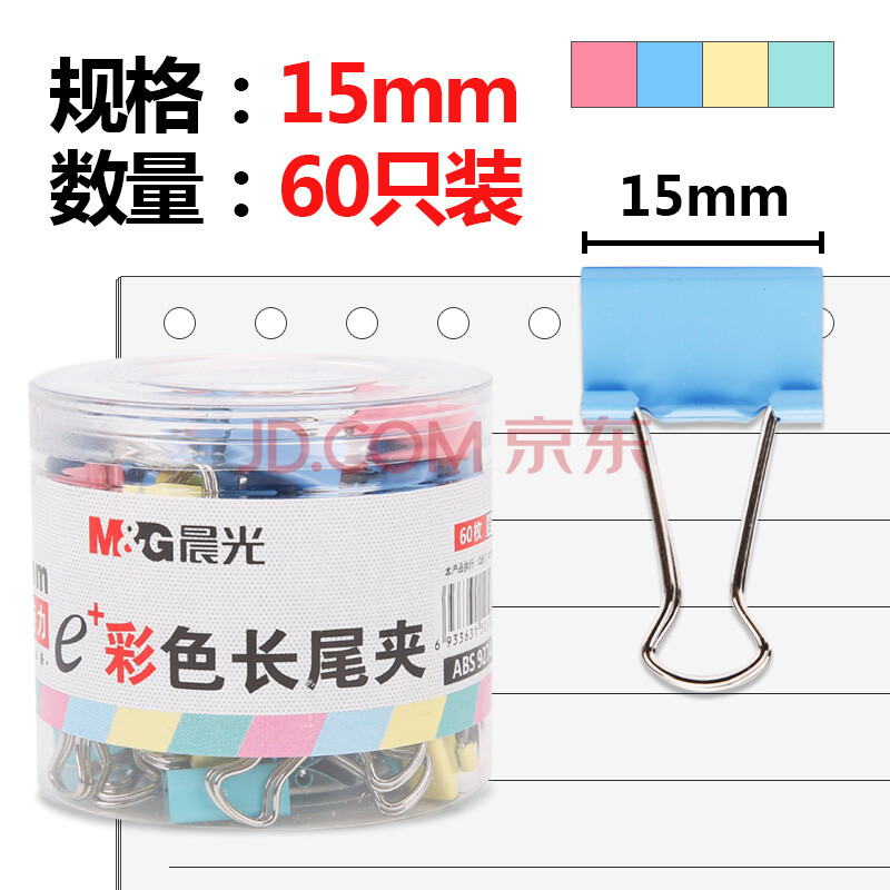 商品相册:晨光(M&G)文具热门商品6#15mm 60只/罐 彩色长尾夹 小号金属票据夹 Eplus系列办公燕尾夹 ABS92743第
