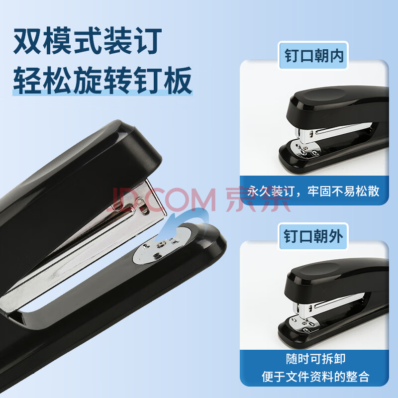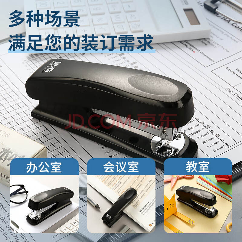 商品相册:晨光(M&G)文具12#订书机 耐用便携订书器 按压装订家用办公用品 适配24/6 26/6订书钉 黑色 ABS92723第