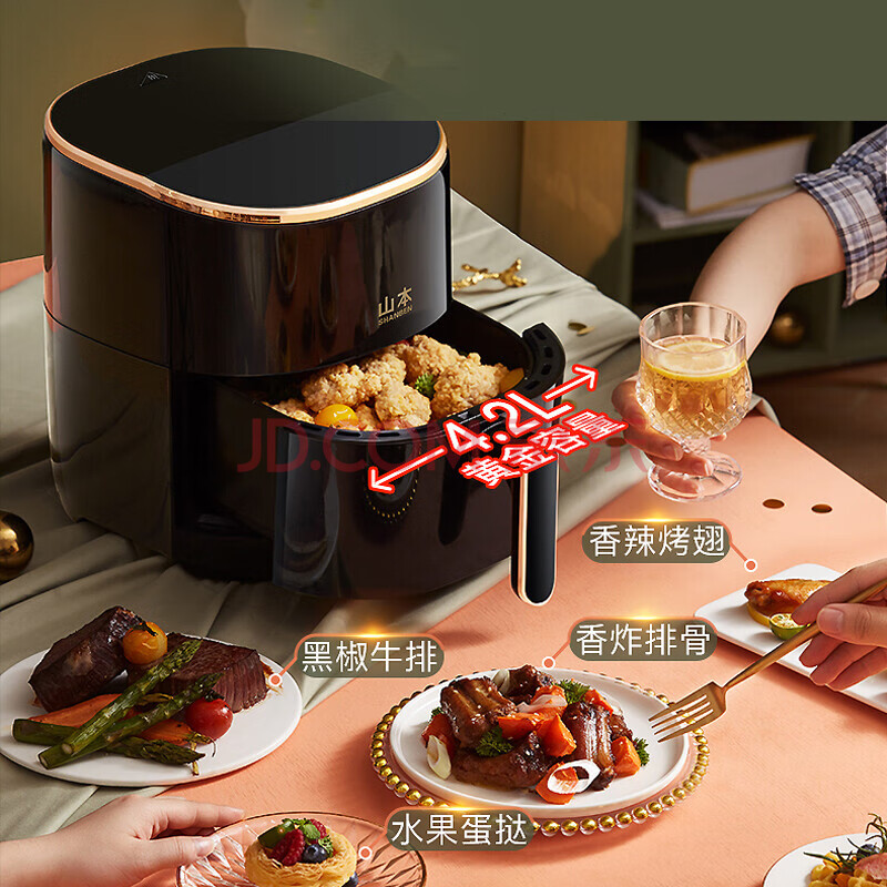 商品相册:山本 空气炸锅家用智能4.2L大容量多功能无油煎炸烤箱6958ts颜色随机第