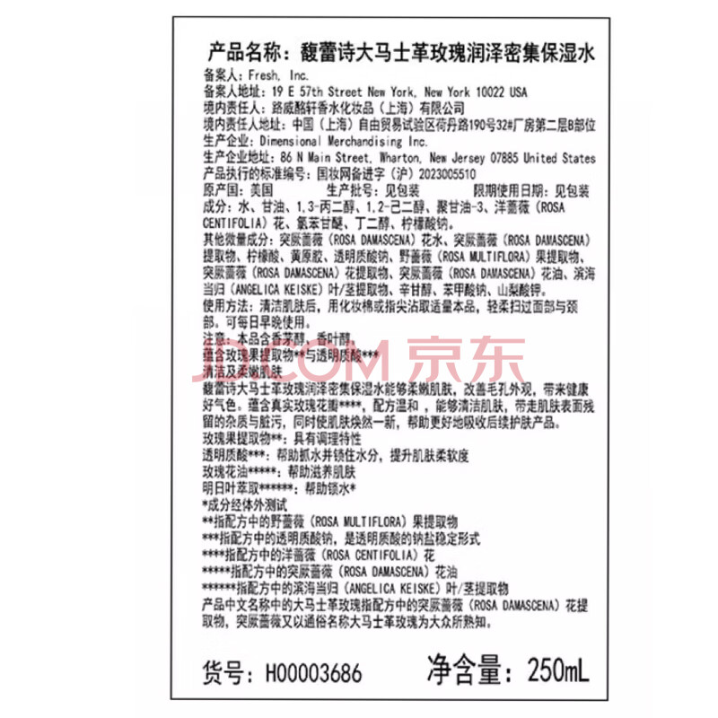 商品相册:Fresh馥蕾诗大马士革玫瑰润泽密集保湿水250ml护肤品 生日礼物送女友第