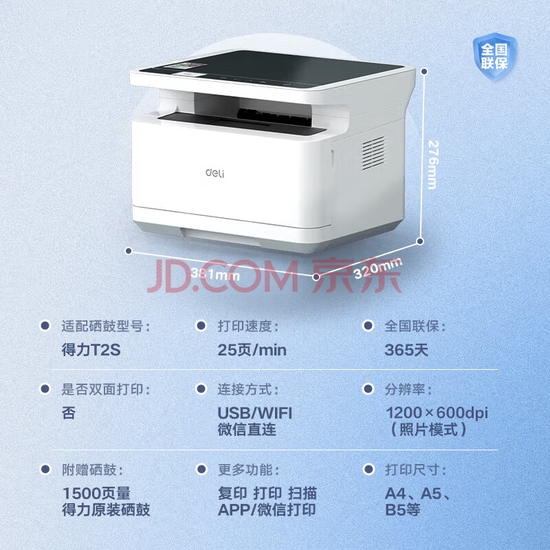 商品相册:得力(deli)M2020W AI打印机三合一多功能打印复印扫描一体 A4办公家用AI打印机 学习作业手机无线 激光打印机第