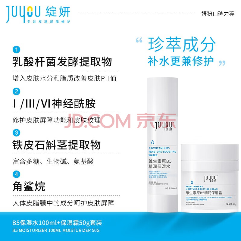 商品相册:绽妍水霜护肤品套装维生素b5敏感肌保湿霜50g+保湿水100ml送女友礼物第
