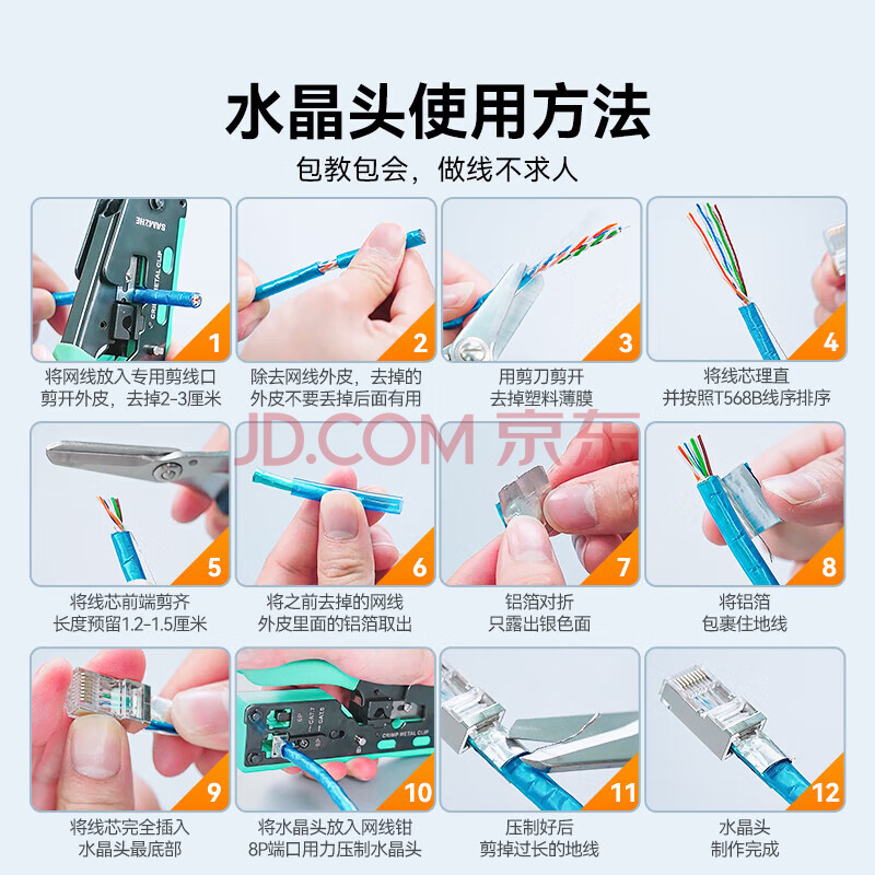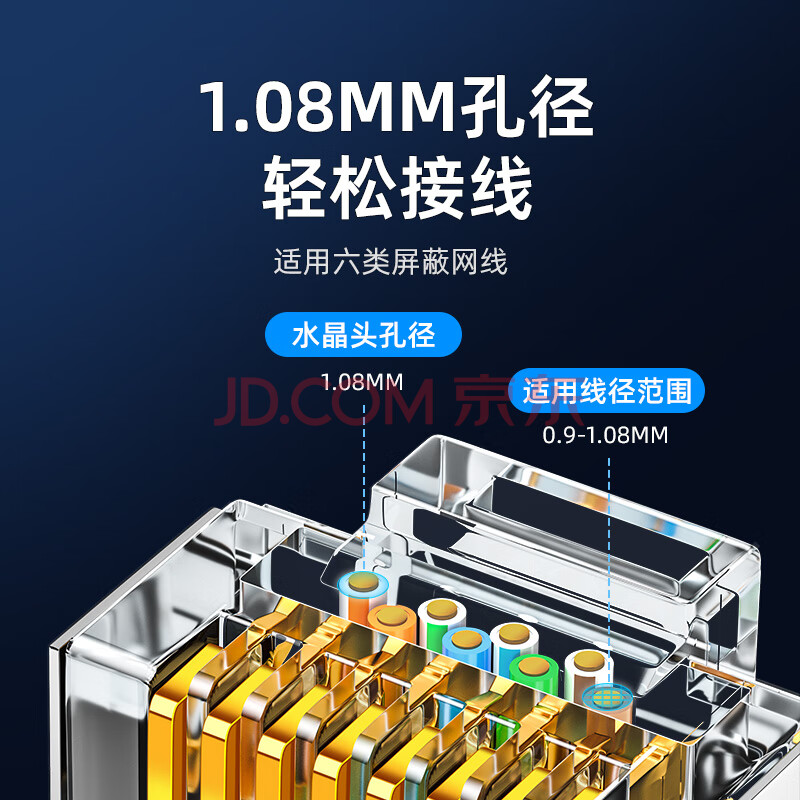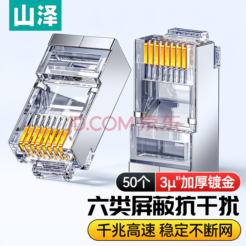 商品相册:山泽 六类屏蔽水晶头 6类千兆网络接头 工程级RJ45电脑网线连接头 Cat6镀金水晶头 50个 SJ-P6650第