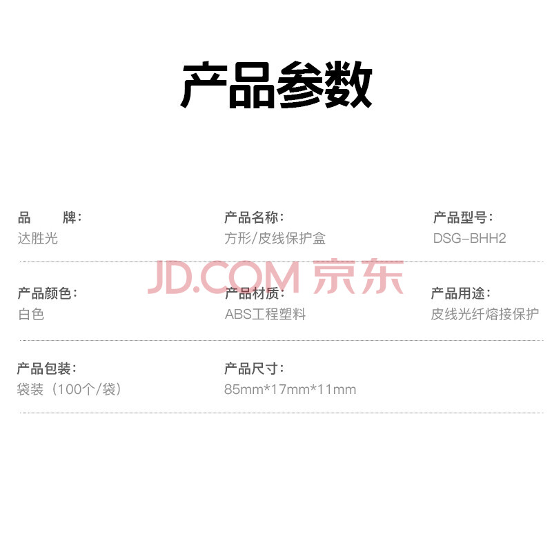 商品相册:达胜光 光缆皮线保护盒 方形 100个/袋 固定热缩管保护管 光纤皮线尾纤熔接接续保护套 DSG-BHH2第