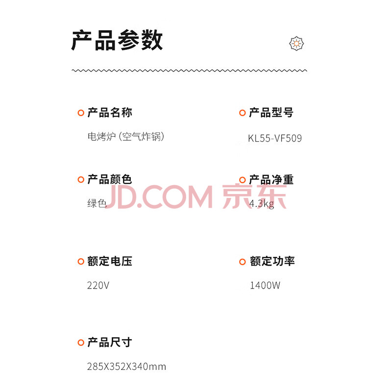 商品相册:九阳(Joyoung)空气炸锅 家用多功能不沾易清洗 准确定时 低脂 无油煎炸 5.5L大容量 KL55-VF509第