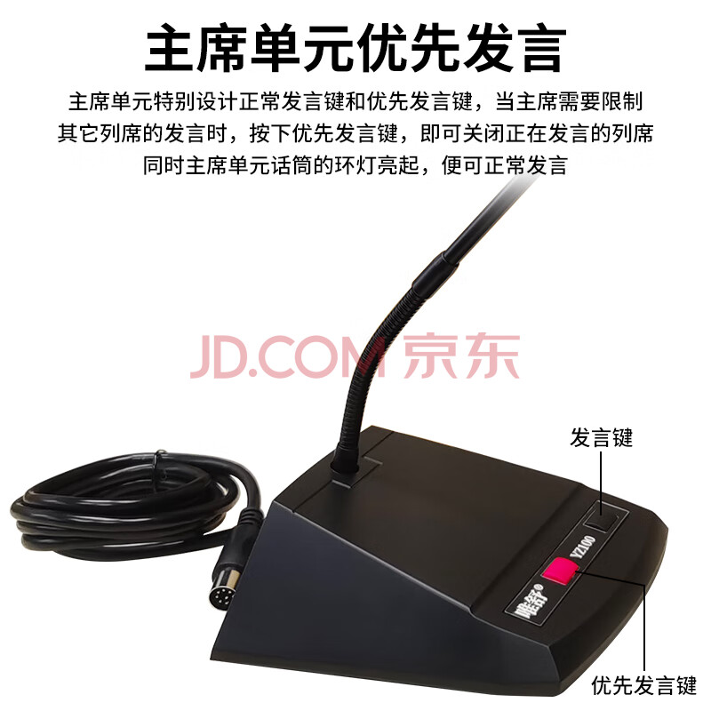 商品相册:唯舒 YZ100 有线麦克风话筒手拉手会议系统讨论型带指示灯大型会议鹅颈麦克风专业演讲发言话筒主单元第