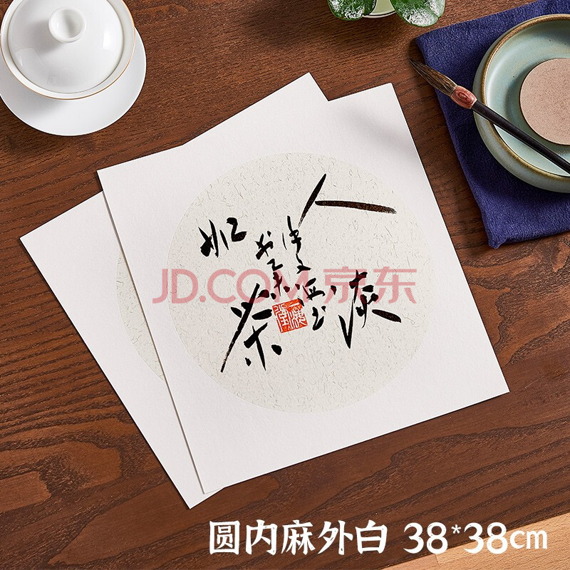 商品相册:一海堂文化 宣纸 卡纸文房四宝国画书法绘画装框用硬卡方形镜片纸 圆内麻外白-生宣 38*38cm*10张第