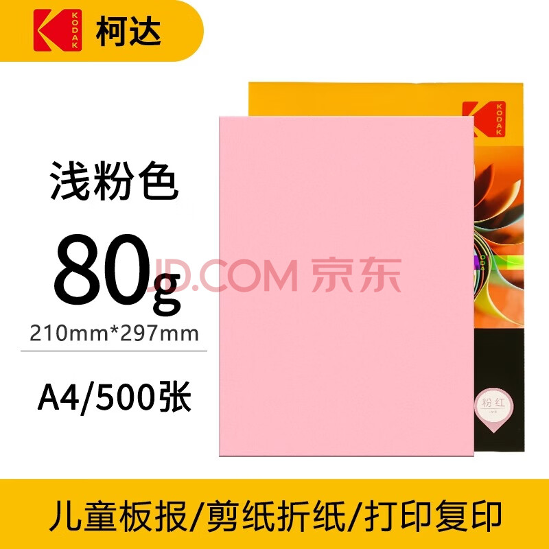 商品相册:KODAK柯达 500张彩色复印纸A4多功能打印纸儿童手工卡纸千纸鹤折纸 80克粉红色9891-233第