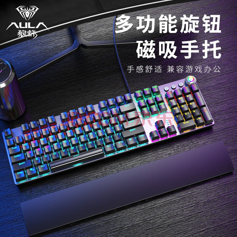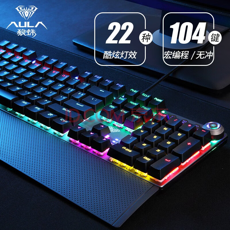 商品相册:狼蛛(AULA)F2088 机械键盘 有线键盘 游戏键盘 104键背光键盘 宏编程 电脑键盘 黑色 黑轴 精英版第