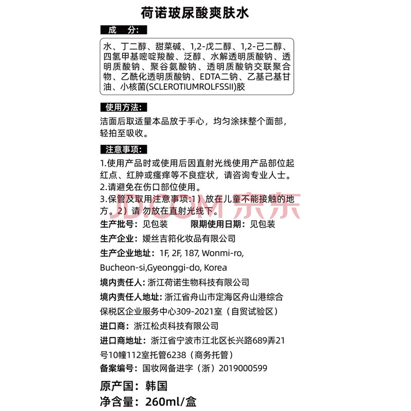 商品相册:荷诺玻尿酸爽肤水260ml补水保湿滋润男女适用女神节礼物第