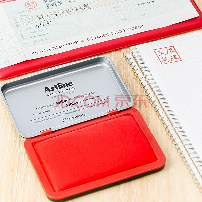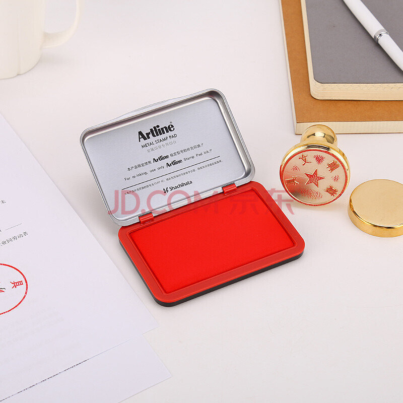 商品相册:旗牌(Shachihata)Artline 办公财务金属印章印台铜章印台油性墨水印尼印台印泥 106*67mm 大号红色 EHP-3第