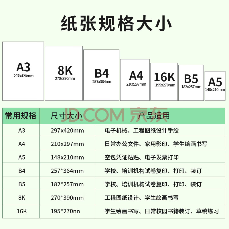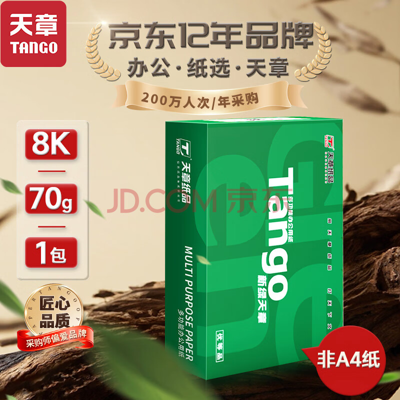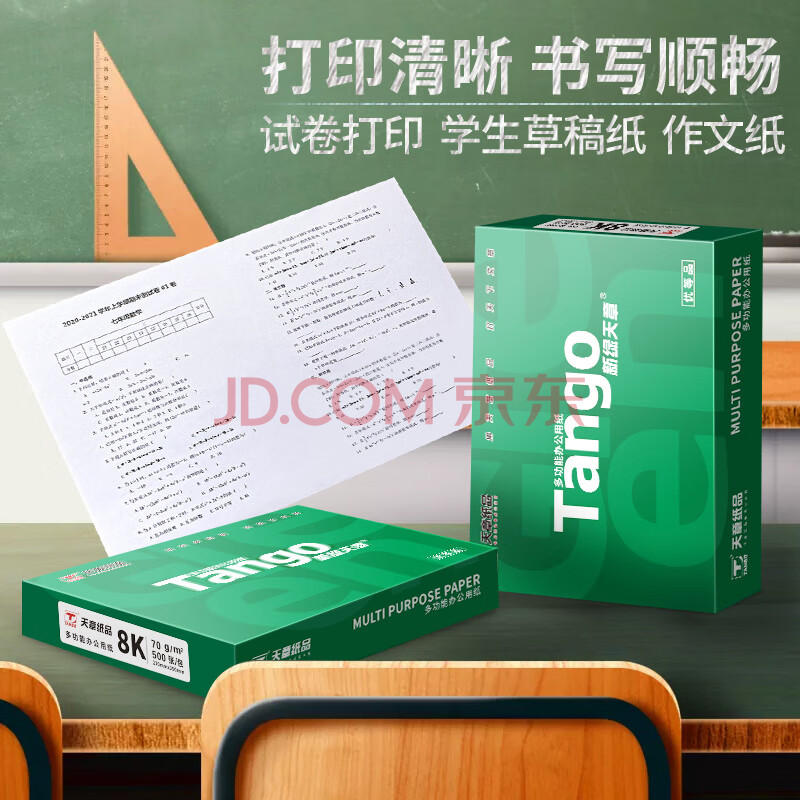 商品相册:天章 (TANGO)新绿天章8K纸打印纸 70g 500张/包 学生试卷纸 草稿纸 单包白纸复印纸 (尺寸270mmx390mm)第