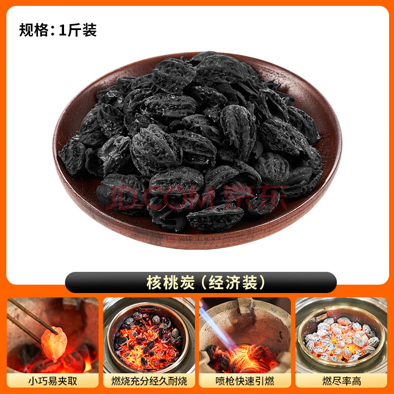 商品相册:尚烤佳(Suncojia)煮茶炭 核桃炭 果木炭 龙眼炭 无烟烧烤碳 茶炉专用炭 经济装1斤第