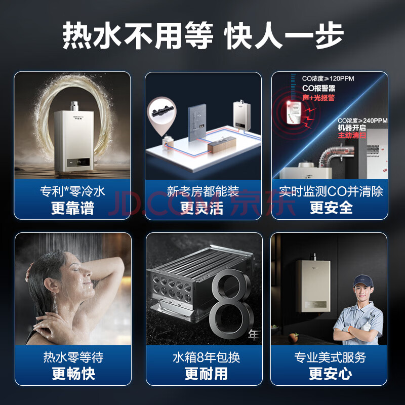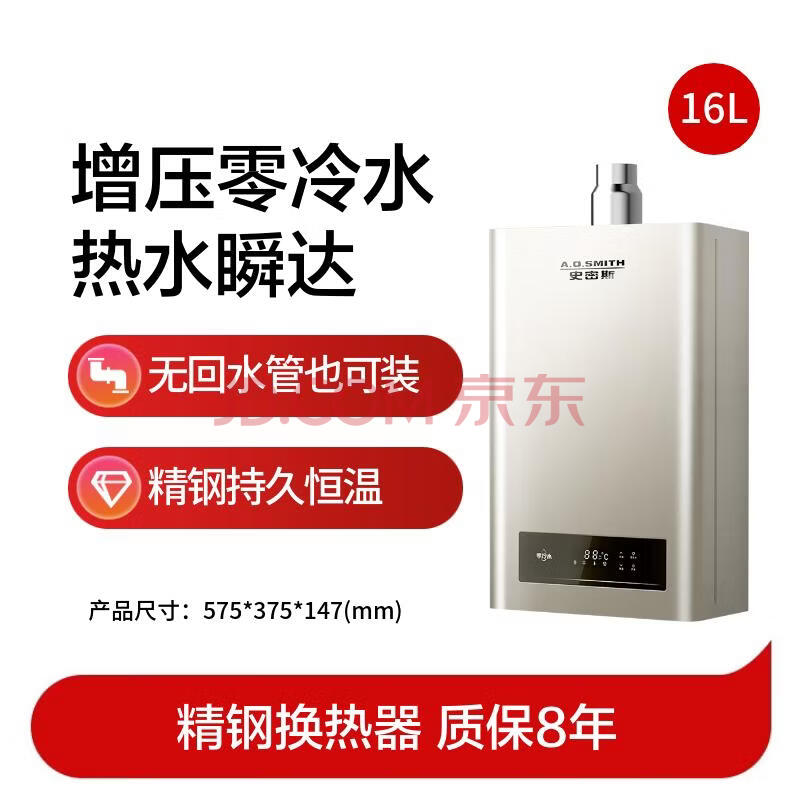 商品相册:史密斯(A.O.SMITH)16升精钢燃气热水器 增压零冷水 持久恒温大水量 负压更安全 JSQ31-BJS 第1张/共5