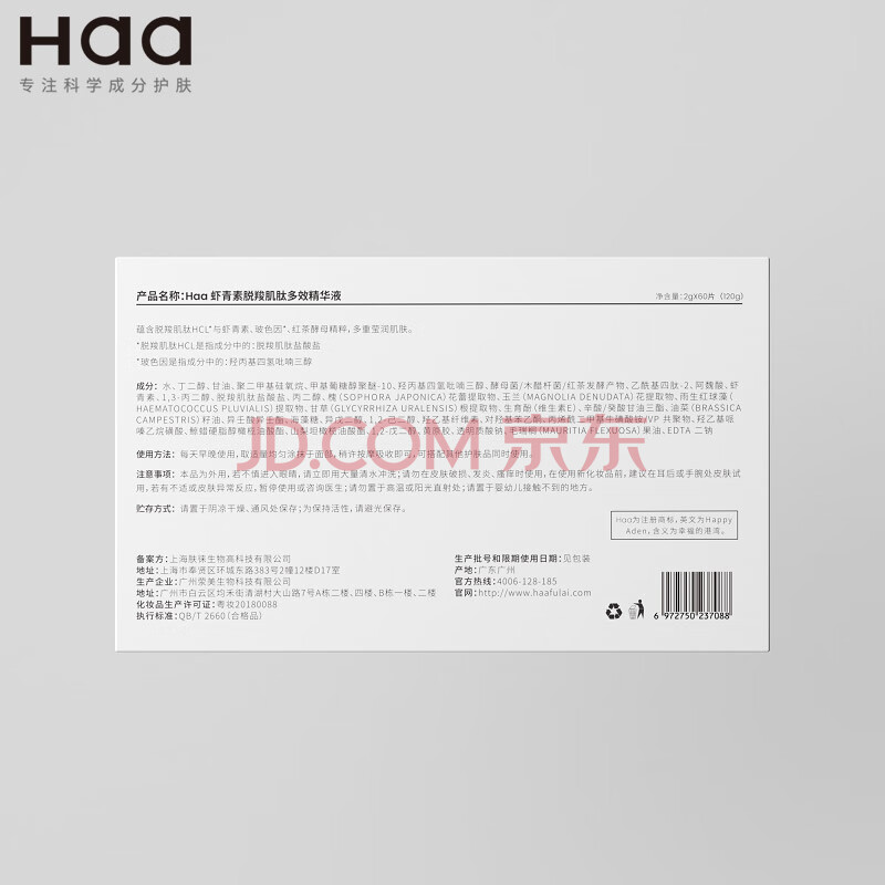 商品相册:Haa虾青素精华液紧致淡纹补水保湿多效修护次抛精华面部护肤品*30片第
