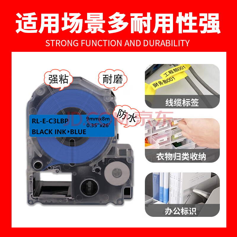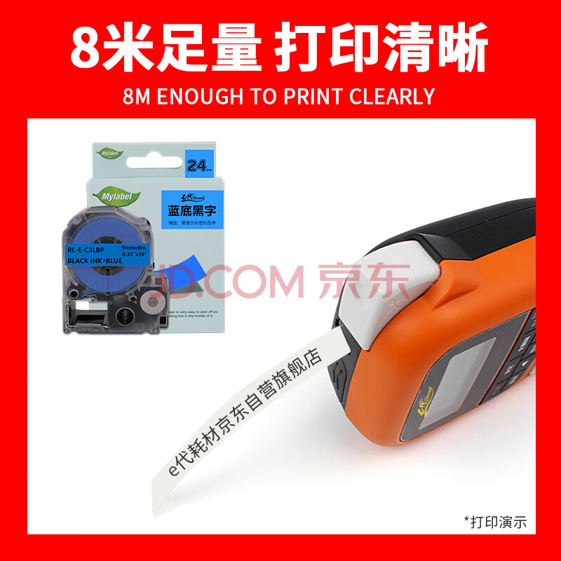 商品相册:e代标签色带适用爱普生9mm蓝底黑字标签纸LW-K400标签机600P 1000P C410 Z700 Z900锦宫打印机第