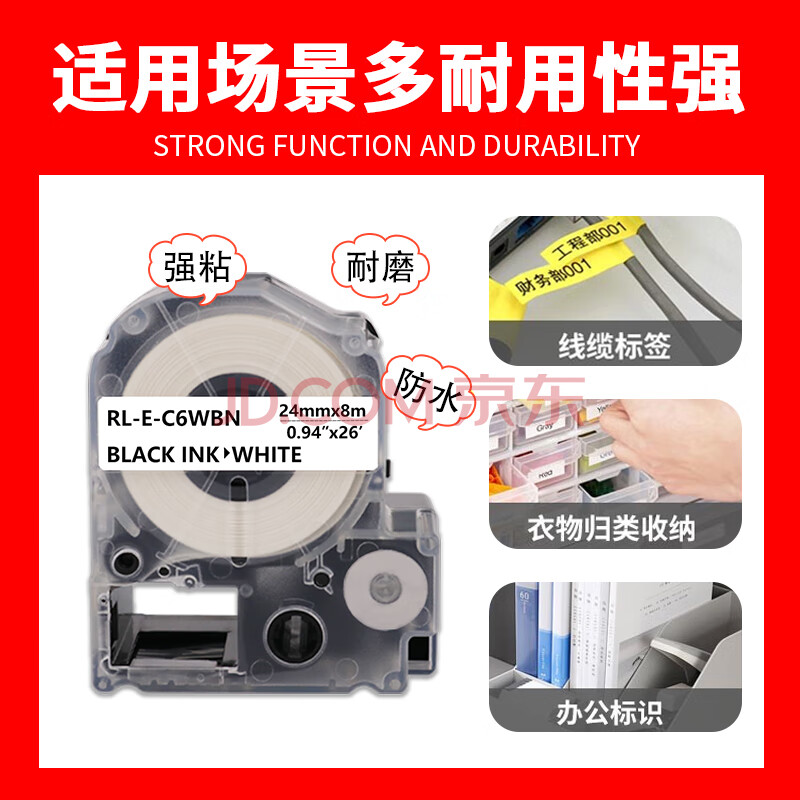 商品相册:e代标签色带适用爱普生24mm白底黑字标签纸LW-600P 1000P标签机Z700 Z900锦宫打印机SR530C 550C第
