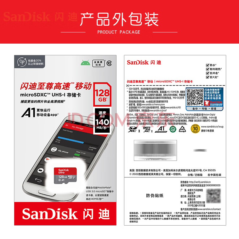 商品相册:闪迪(SanDisk)128GB TF(MicroSD)内存卡 A1 U1 C10 至尊高速移动版存储卡 读速140MB/s 手机平板游戏机内存卡第