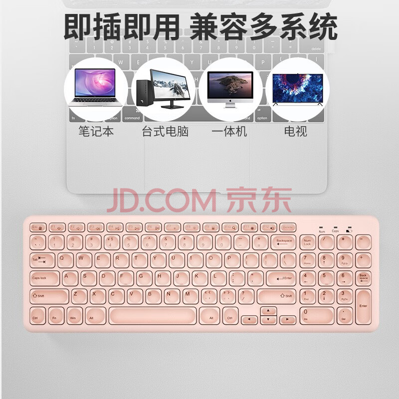 商品相册:B.O.W航世HW256C 无线键盘 超薄便携巧克力键盘防泼溅笔记本台式办公通用键盘96键外接USB数字键盘 粉色第
