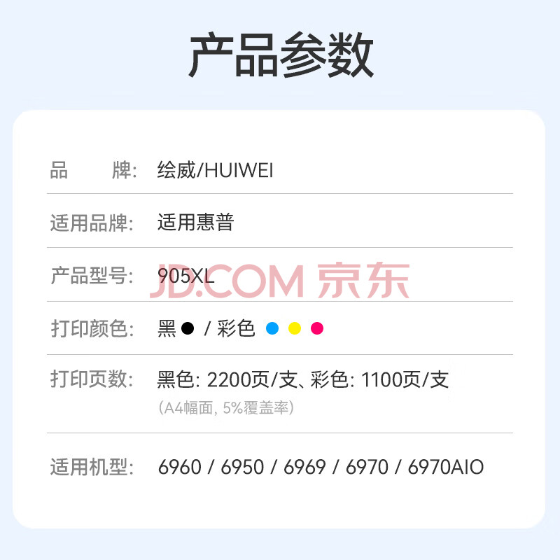 商品相册:绘威 905XL墨盒 适用惠普6960墨盒 6950 6969 6970 hp officejet pro 6960打印机墨盒 905墨盒【四色套装】第