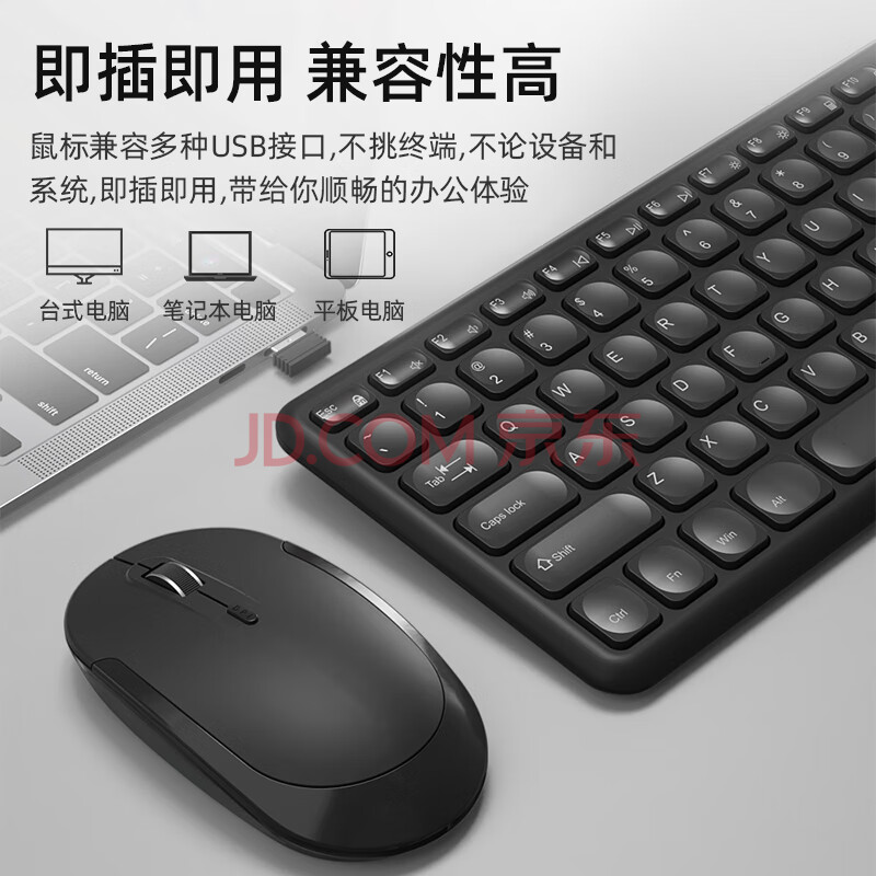 商品相册:B.O.W航世 HW256 无线键盘鼠标套装 办公键鼠套装96键 超薄便携 防泼溅 电脑键盘 笔记本键盘 黑色第