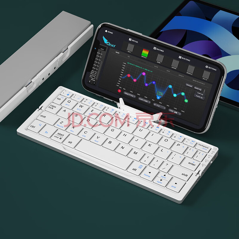 商品相册:B.O.W航世 HB199 折叠无线蓝牙键盘 手机平板iPad电脑通用办公键盘60键 银色第