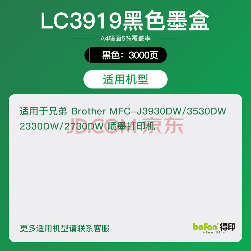 商品相册:得印LC3919BK黑色墨盒大容量适用兄弟MFC-J3930DW 3530DW 2330DW 2730DW打印机墨盒第