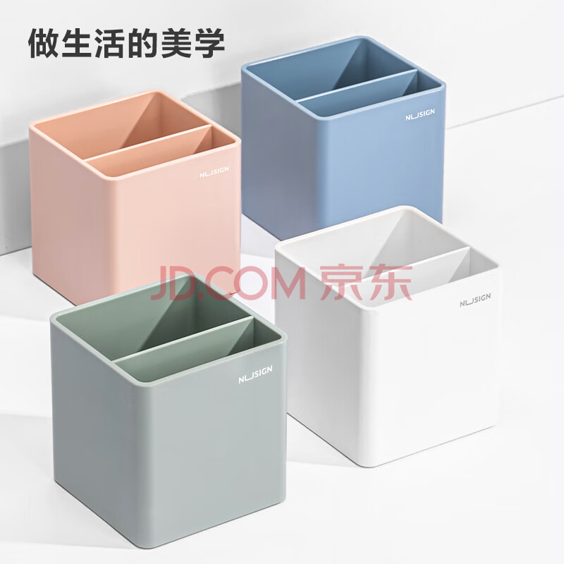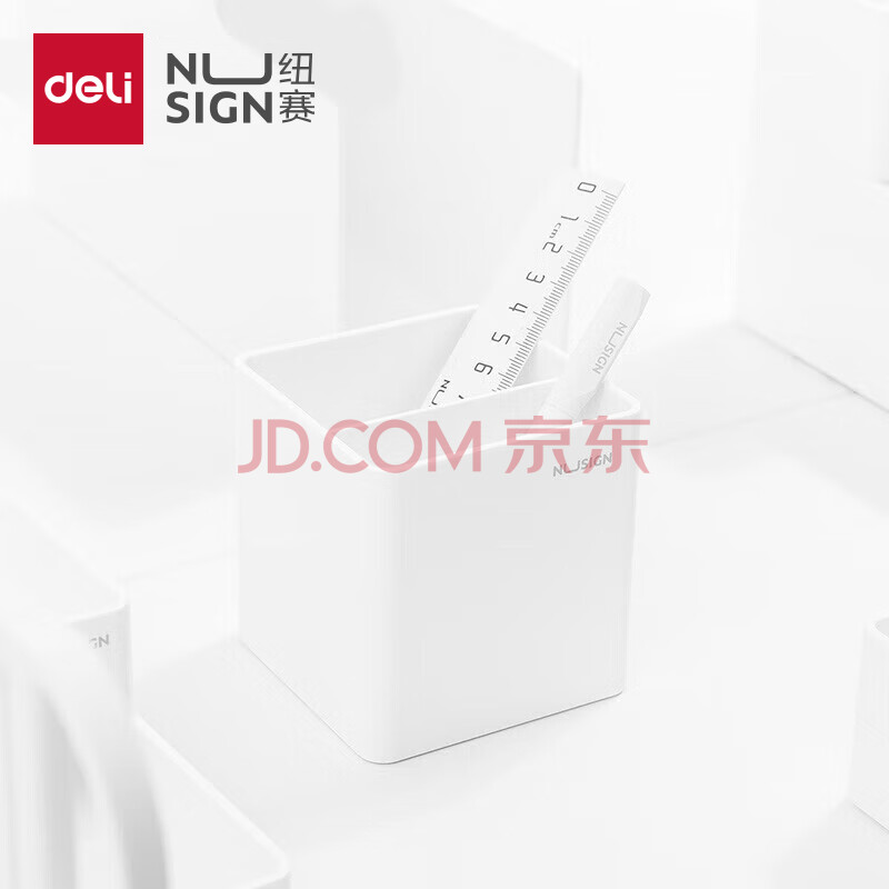 商品相册:得力(deli)【热门商品】方格笔筒 德国创意设计 简约ins办公室桌面收纳防滑底 象牙白NS011第