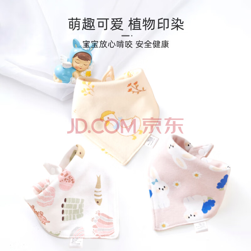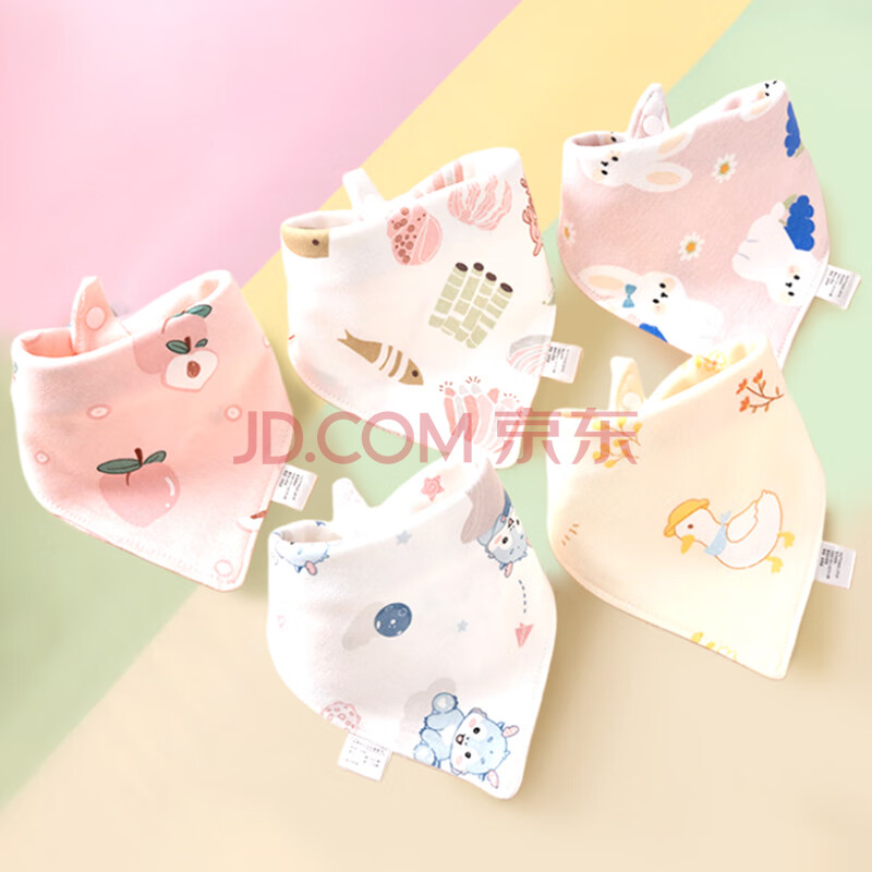 商品相册:9i9宝宝口水巾纯棉防水围嘴婴儿三角巾按扣可调节加大升级5条A60粉第