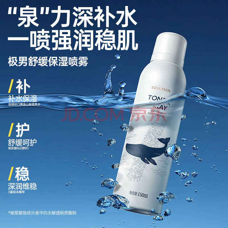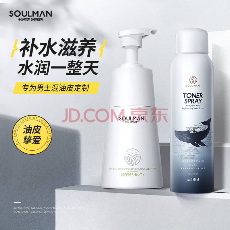 商品相册:极男 男士洁净补水护肤品套装350ml 海盐氨基酸控油洁面+爽肤水喷雾第