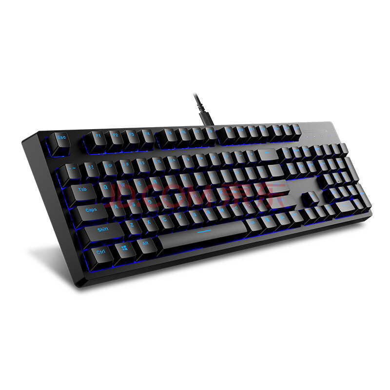 商品相册:[华为认证]有线机械键盘-雷柏V808-黑色-蓝光-Cherry红轴-104键全键无冲突防泼溅设计第