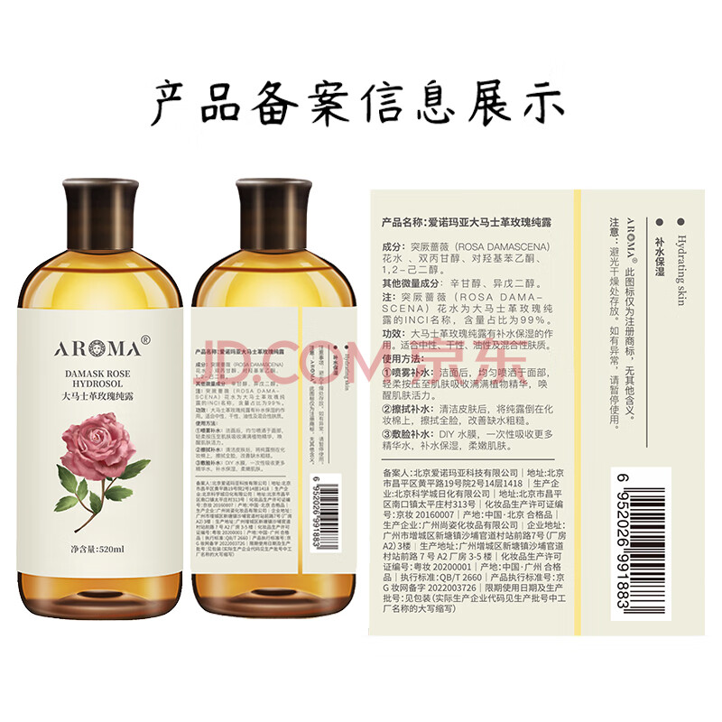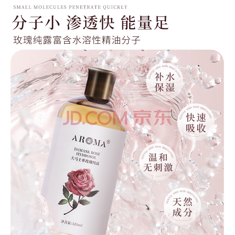 商品相册:爱诺玛亚(AROMA)大马士革玫瑰纯露520ML爽肤水湿敷小分子喷雾补水保湿礼物第