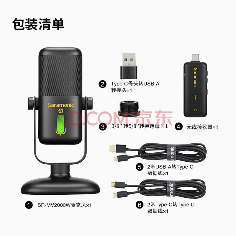 商品相册:枫笛(Saramonic)SR-MV2000W无线双模桌面麦克风专业有线电脑电容直播K歌降噪设备电竞游戏语音外设第