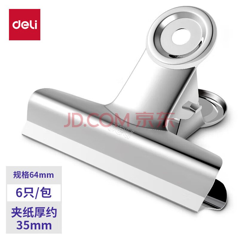 商品相册:得力(deli)6只64mm圆形铁票夹 不锈钢票夹 资料整理夹票据夹文件夹子 6只/包 小号9522第