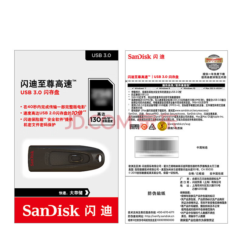 商品相册:闪迪(SanDisk) (SanDisk)512GB USB3.0 U盘 CZ48至尊高速 黑色 读速130MB/s 经典USB3.0 U盘 高速安全可靠第