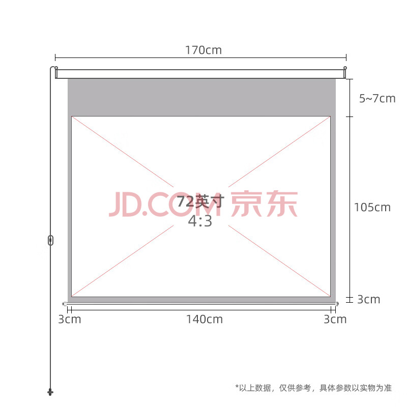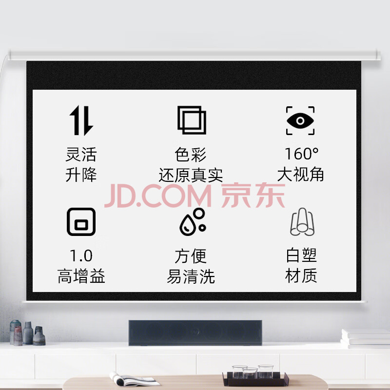 商品相册:宝视来 投影仪电动幕布 72英寸4:3白塑壁挂幕布 家用办公培训高增益 灵活升降【配遥控器】第