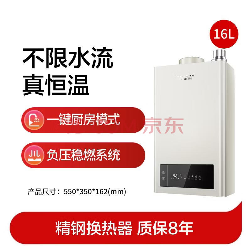 商品相册:史密斯(A.O.SMITH) 16升精钢燃气热水器 不锈钢换热器包8年 负压燃烧更安全 精控恒温 家用天然气JSQ31-TM5 第