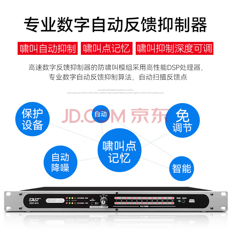 商品相册:先科专业反馈抑制器麦克风防啸叫会议发言婚庆舞台演讲学校KTV全自动数字移频器处理器工程级DSP-816第