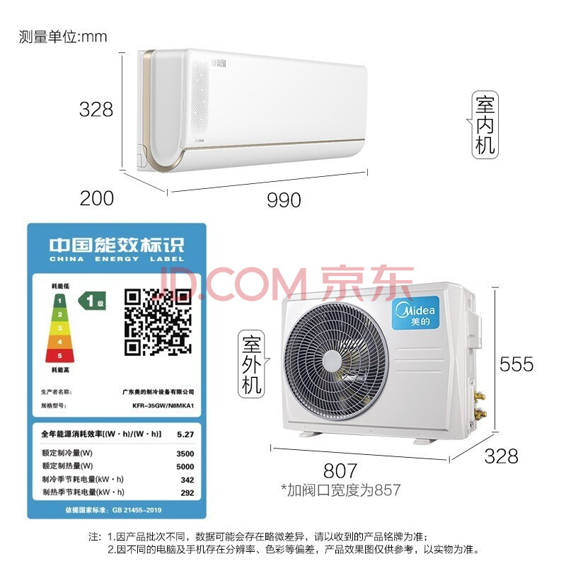 商品相册:美的(Midea) 焕新风 新风系统 1.5匹新一级能效 智能变频冷暖 KFR-35GW/N8MKA1第
