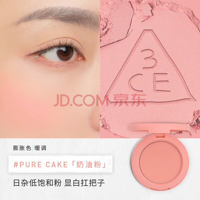 商品相册:3ce单色腮红奶油粉PURECAKE自然修容高光膨胀色生日礼物送女友第