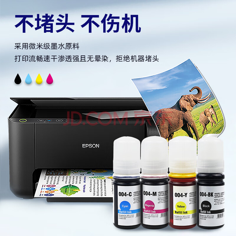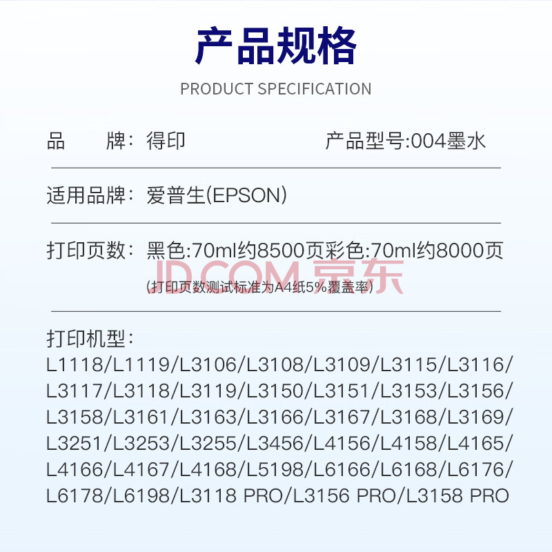 商品相册:得印适用爱普生004墨水L3255 L3153 L1258 L3258 L3118 L3219 L3251 L3258 L3256 L3118 epson打印机墨水 黑色第
