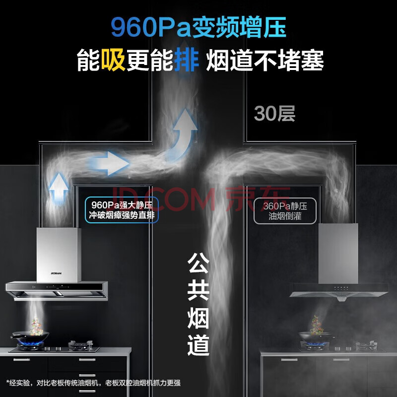 商品相册:老板(Robam)双子星抽油烟机D1S欧式顶吸双腔变频家用大吸力油烟机可搭配灶具第